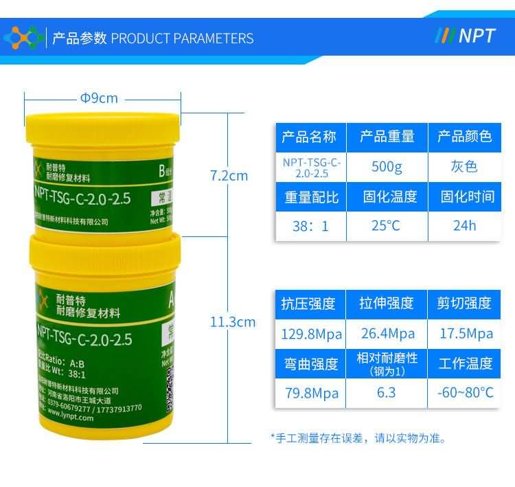 雙組分,以陶瓷顆粒及復合陶瓷顆粒、金屬碳化物為骨材與PDMG預聚體為基礎的耐磨復合材料,具有耐水、耐油、耐酸堿性。適用(-60℃-250℃)設備過流沖蝕、設備的大面積修復、設備預涂耐磨層,如旋流器、浮選柱、浮選機、泡沫槽、分級機、攪拌桶、溜槽、管件類、泵類等修復(典型用途見主要物理機械性能表)。