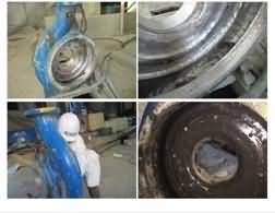 雙組分,以金屬碳化物、納米復(fù)合超硬顆粒為骨材、DNI-PDMG預(yù)聚體為基礎(chǔ)的耐磨復(fù)合材料,具有超強耐磨性、柔韌性、耐水、耐油、耐酸堿性。適用(-60℃-250℃)惡略環(huán)境中設(shè)備過流沖蝕(顆粒大于50mm)、設(shè)備的局部修復(fù)、設(shè)備預(yù)涂耐磨層,如旋流器、浮選柱、浮選機、泡沫槽、分級機、攪拌桶、溜槽、管件類、渣漿泵、脫硫泵、污水泵、往復(fù)泵、隔膜泵等泵類修復(fù)(典型用途見主要物理機械性能表)。