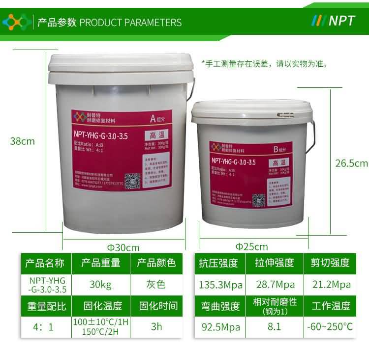 雙組分,以金屬碳化物、納米復(fù)合超硬顆粒為骨材、DNI-PDMG預(yù)聚體為基礎(chǔ)的耐磨復(fù)合材料,具有超強(qiáng)耐磨性、柔韌性、耐水、耐油、耐酸堿性。適用(-60℃-250℃)惡略環(huán)境中設(shè)備過流沖蝕(顆粒大于50mm)、設(shè)備的局部修復(fù)、設(shè)備預(yù)涂耐磨層,如旋流器、浮選柱、浮選機(jī)、泡沫槽、分級(jí)機(jī)、攪拌桶、溜槽、管件類、渣漿泵、脫硫泵、污水泵、往復(fù)泵、隔膜泵等泵類修復(fù)(典型用途見主要物理機(jī)械性能表)。