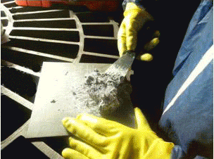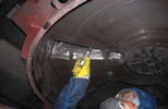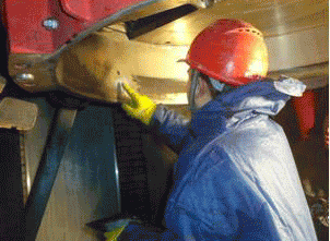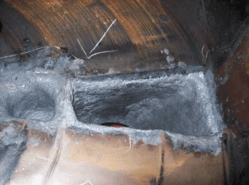 做好施工前的準(zhǔn)備工作:如工具、材料等。同時(shí)清理干凈散落在設(shè)備和地面上的煤粉。如果出料口等部位有局部穿孔,要先用3-5mm厚鋼板錘出相應(yīng)弧度補(bǔ)焊穿孔。表面處理:用角磨機(jī)打磨或 噴砂處理去除磨損部位表面的氧化層和松動物質(zhì),露出金屬原色。用干凈棉紗和無水乙醇清洗至沒有雜質(zhì)痕跡。