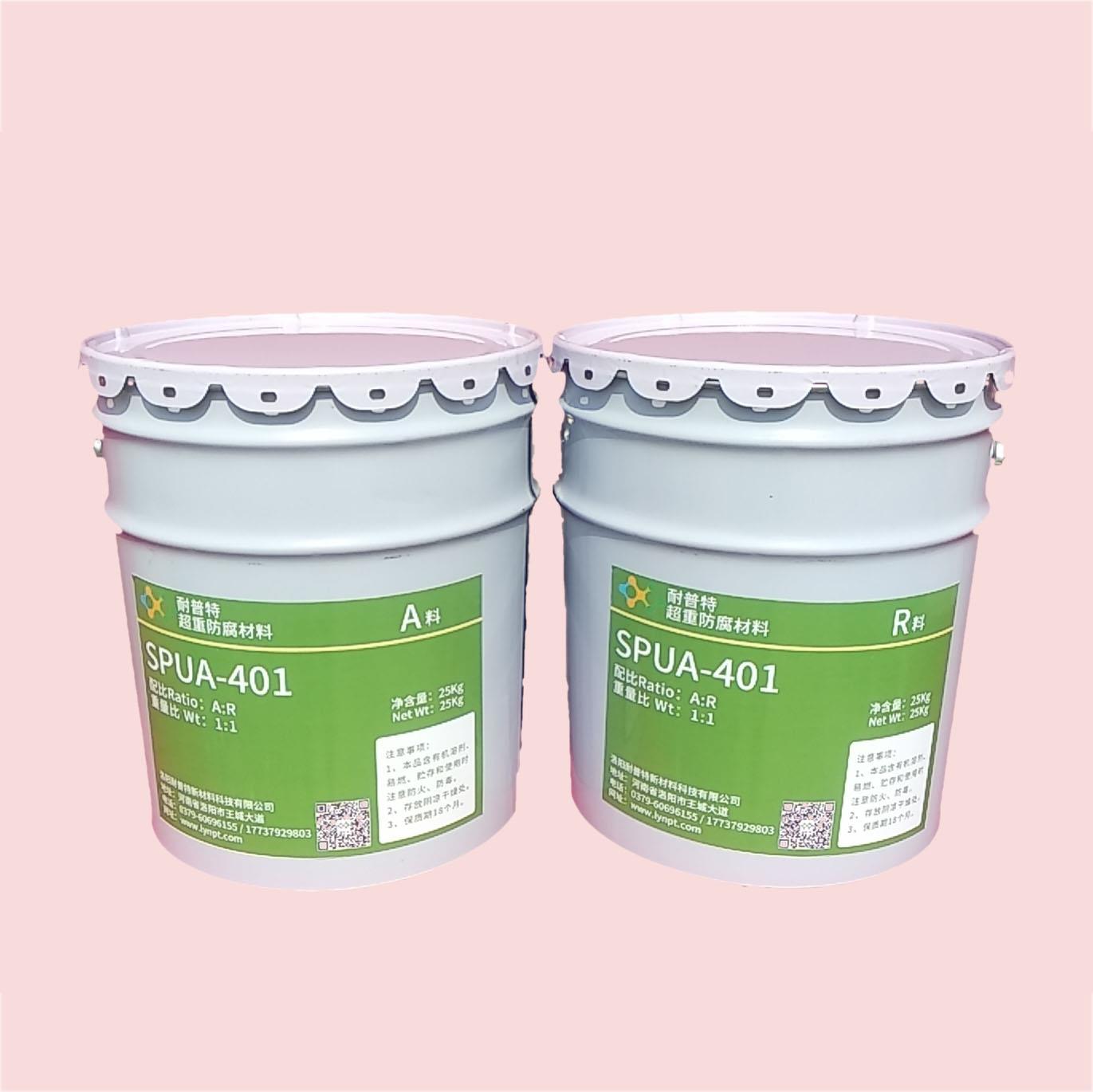 NPT-SPUA-401超重防腐材料是由半預(yù)聚體、端氨基聚醚、胺擴(kuò)鏈劑等原料現(xiàn)場噴涂成型的第三代聚脲彈性體。該技術(shù)將新材料、新設(shè)備和新工藝有機(jī)地結(jié)合在一起,是傳統(tǒng)施工技術(shù)的一次革命性飛躍,是目前國際上先進(jìn)的施工技術(shù)之一。